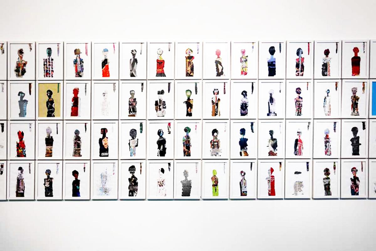Series of 60 sixty pieces of collag, , 23x 33 cm, total dimension 350 x 128 cm