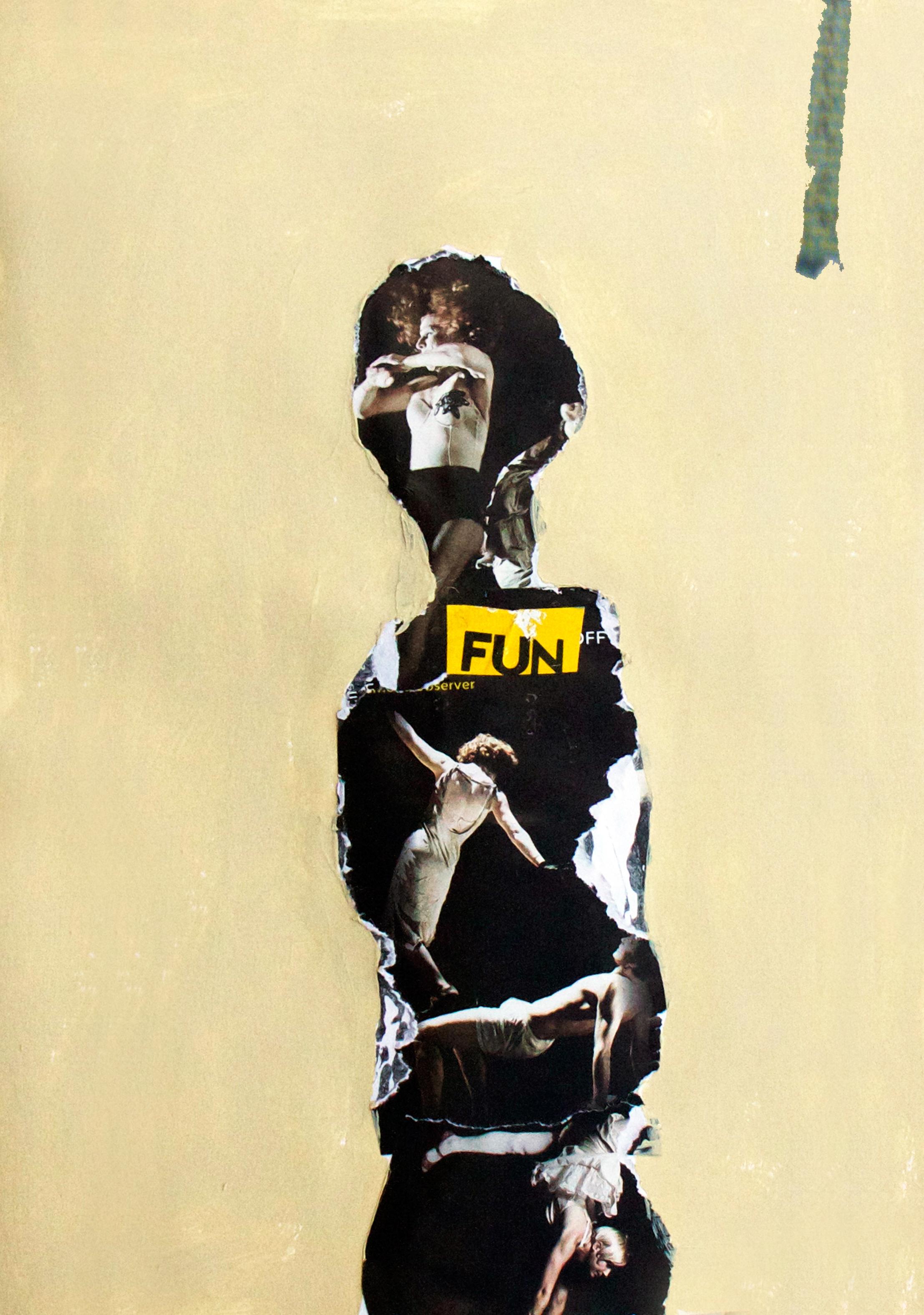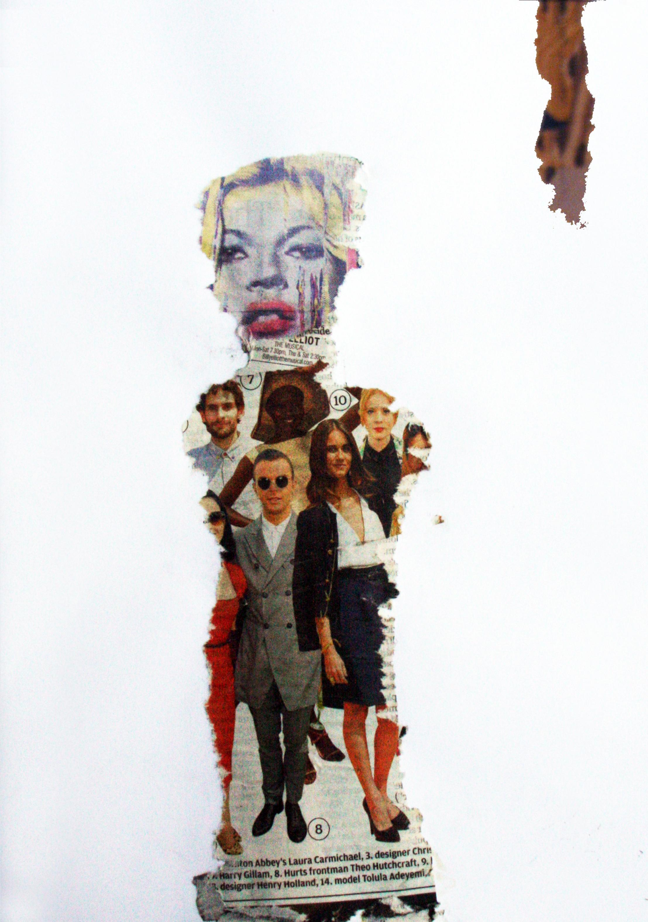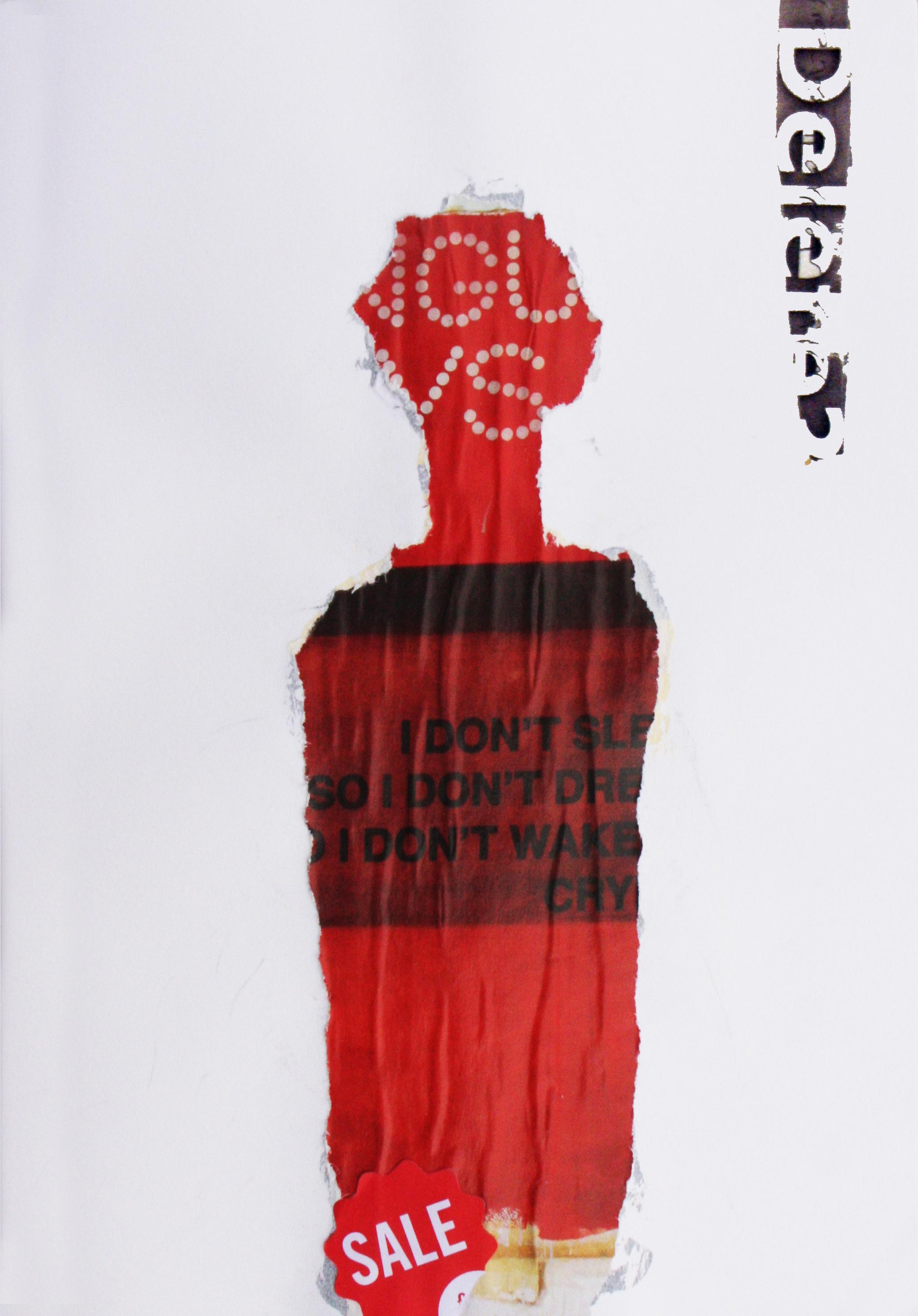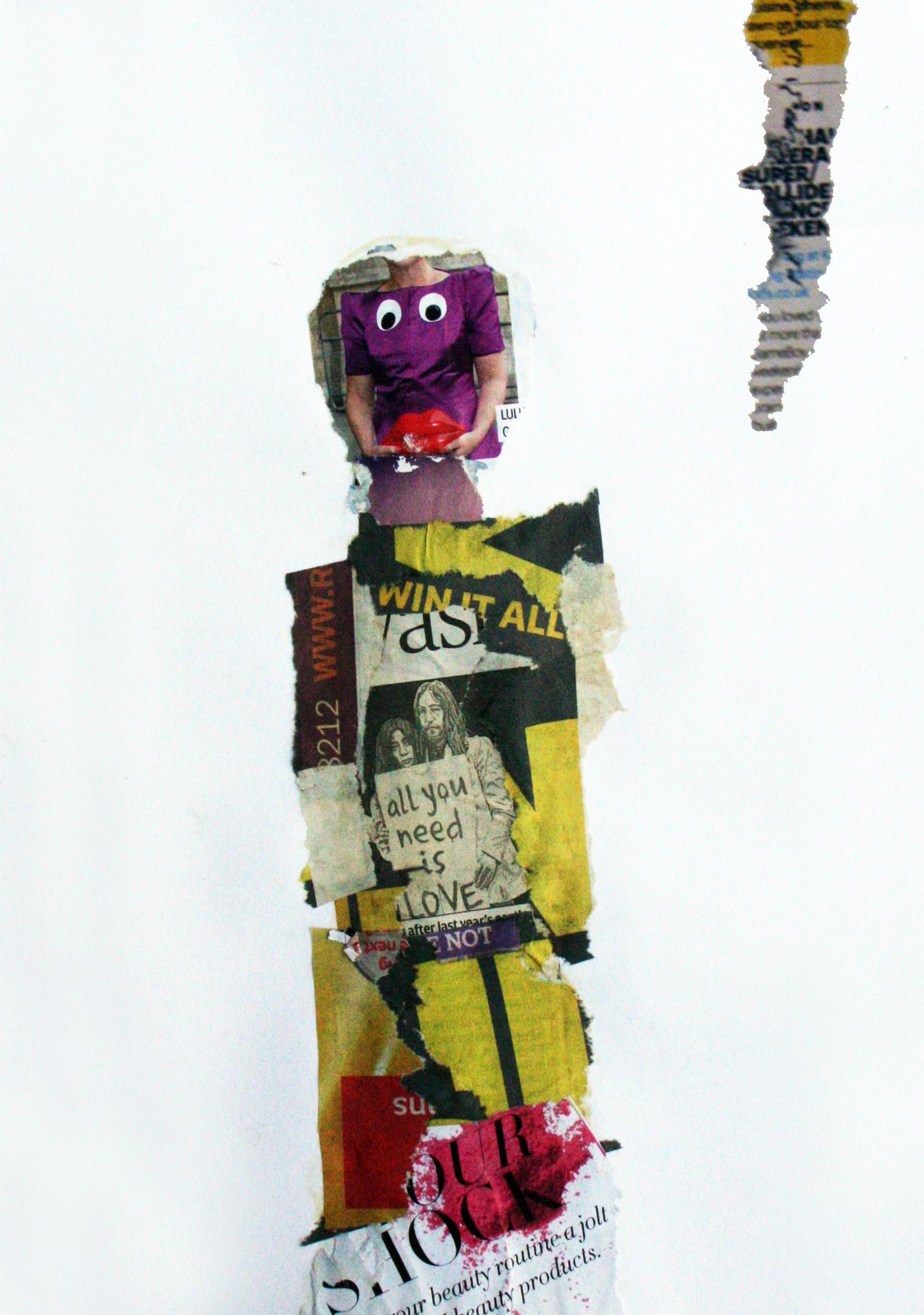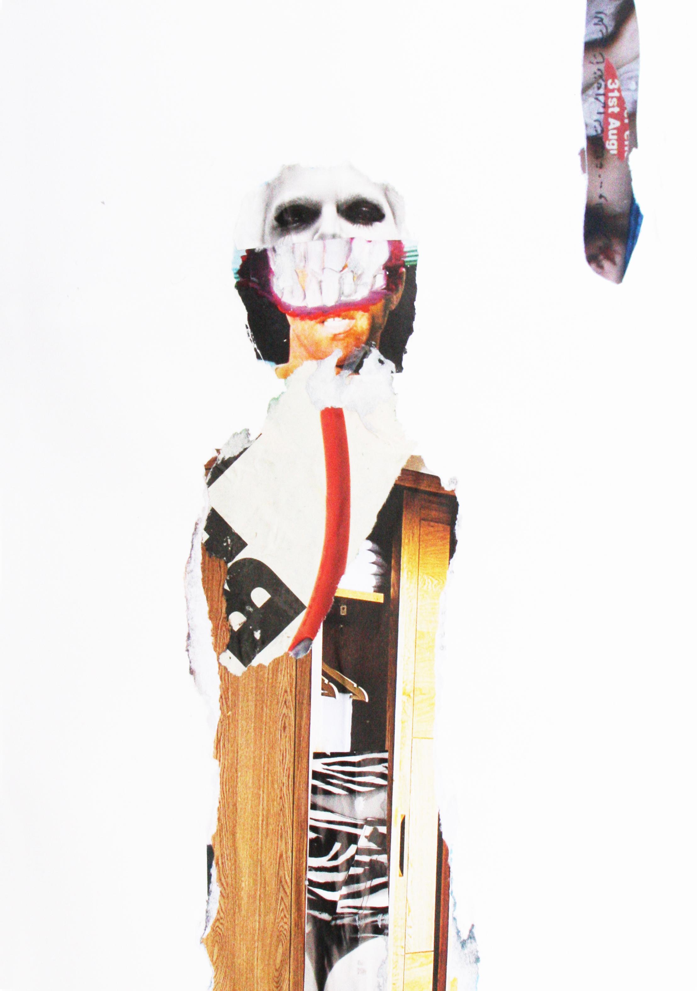 In his collages the artist offers records of his daily excursions during his time in London. In this series of approximately sixty pieces unique mixed media works on paper, an individual silhouetted ‘self-portrait’ figure is composed of randomly collected paper clippings from Alhroub’s regular excursions to places he’s visited or passed through. The transferral of normal daily activities from a public to private context later becomes part of a personal memory represented in a visual collage linked to an act. This act is subsequently associated with a time and a place to become a diary, a key to a memory somewhere. This action presents questions about the value of the artwork... who, how and why?