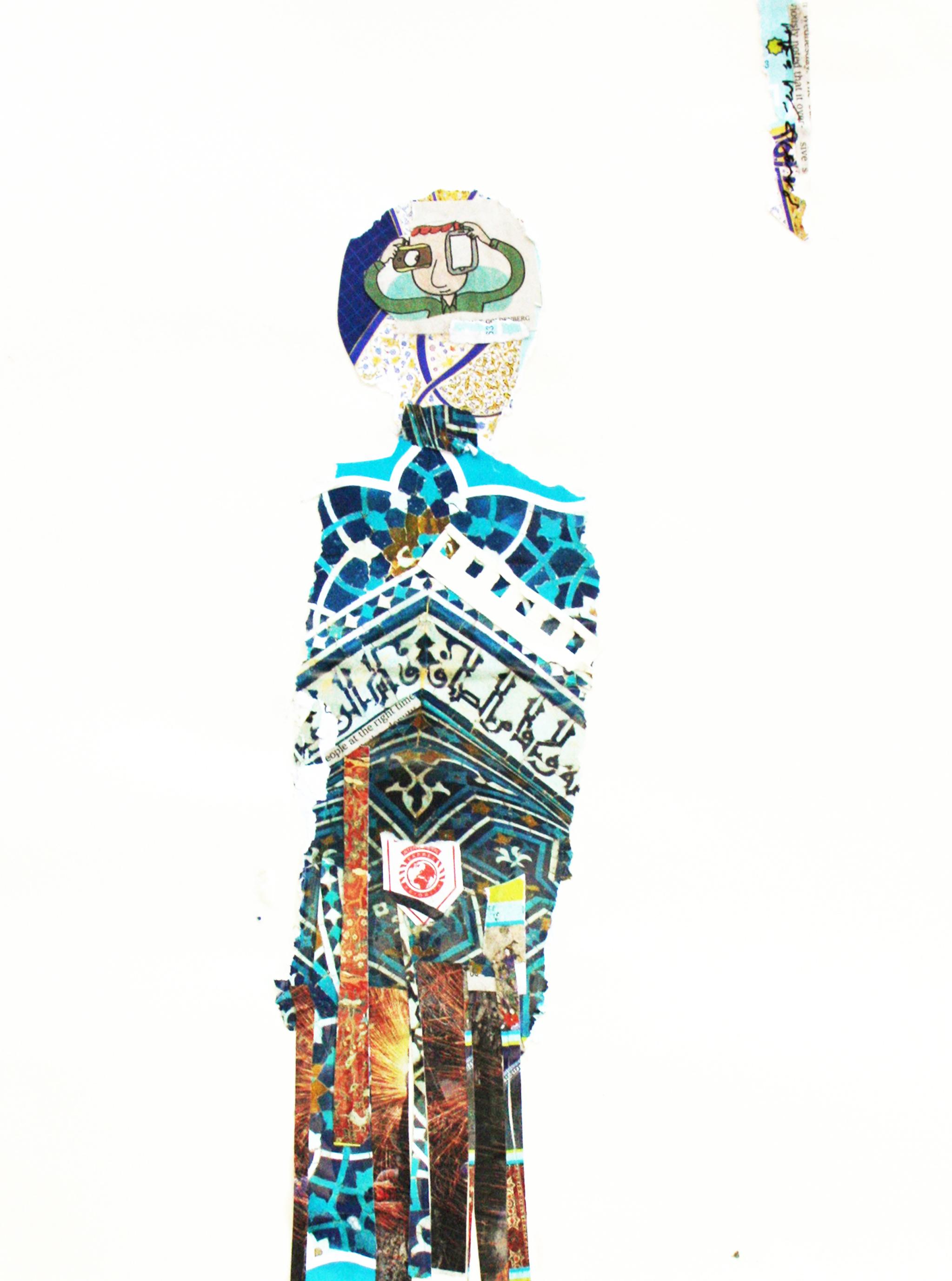 It was a daily visual diary that I did by collecting paper and scraps of public spaces and places that I visited during my stay. A transfer of the daily routine act out of its public context to the private one, through the scraps that I randomly collected on daily basis to become a part of a personal memory represented in a daily visual collage linked to an act, an act linked to time and place, to become diaries and keys to a memory somewhere. The project was also a daily reconstruction of self –identity through what I was exposed to; a combination of politics, society, religion, economy and sex… and their impact on the formation of self-identity.