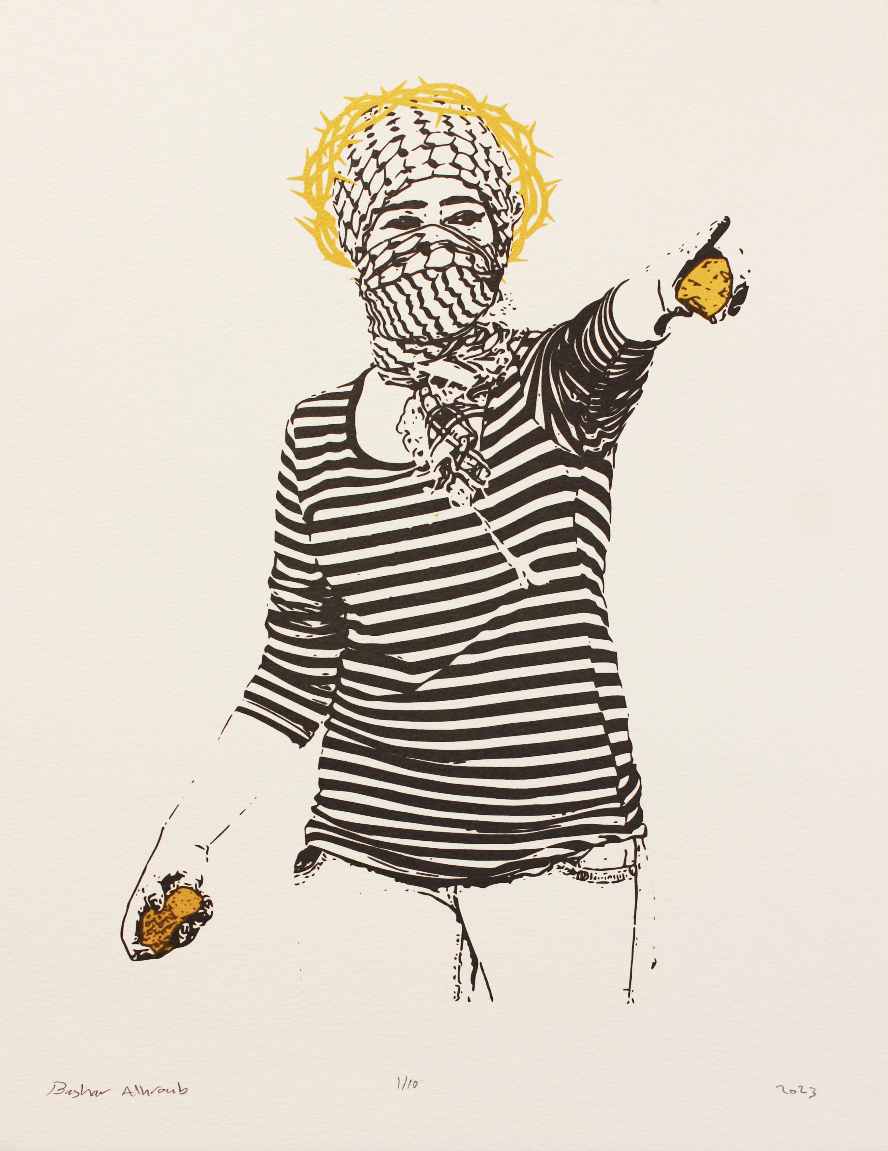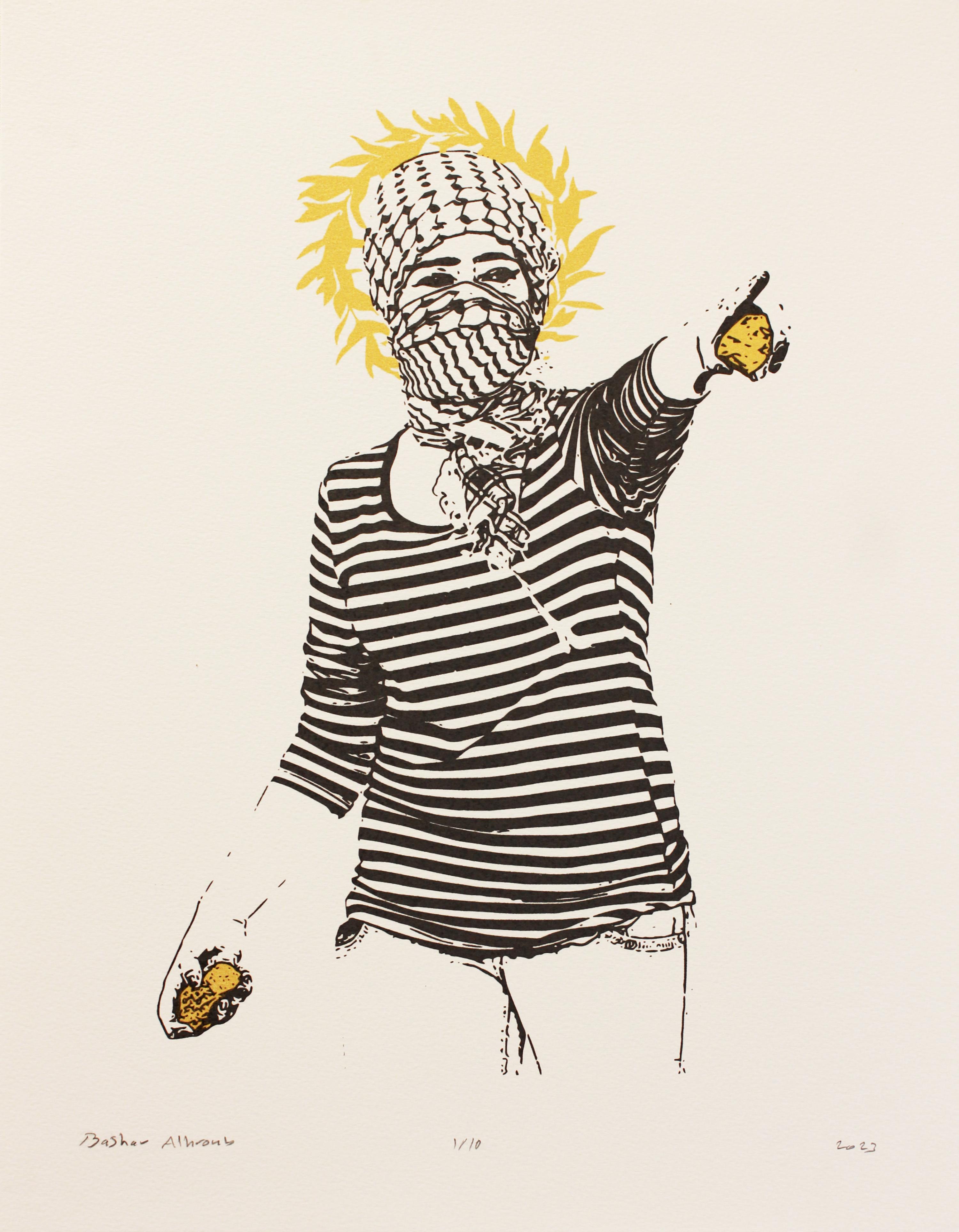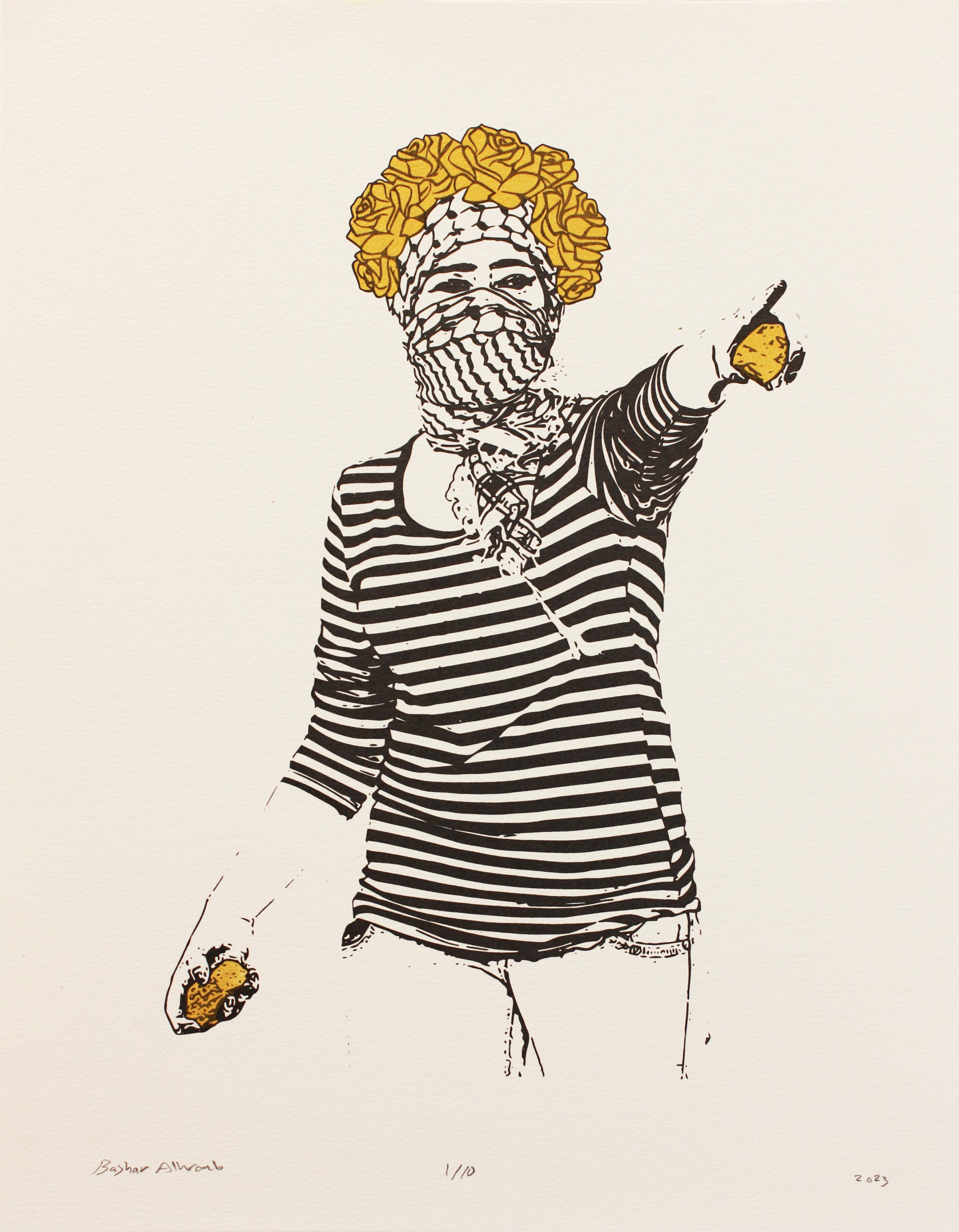 This project aims to portray Palestinian resistance women in a contemporary light, departing from the conventional historical and heritage perspectives often associated with artistic representations of Palestinian women through a series of five pieces, where I explore the iconic representation of women from various angles, encompassing the multifaceted nature of womanhood and her role in society. Each piece measures 38 x 48 cm and is created using the silkscreen printing technique.