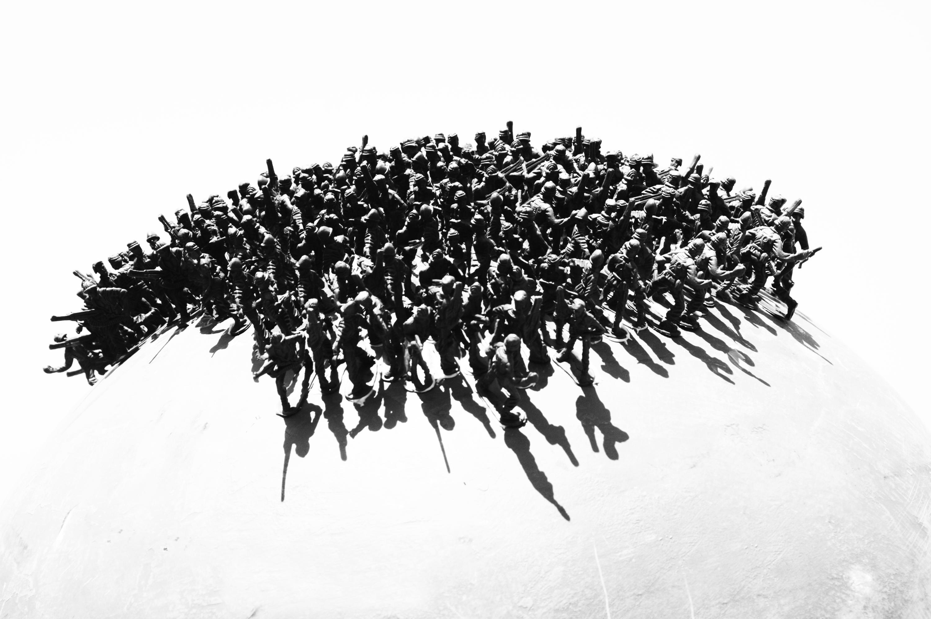 Palestinian artist Bashar Alhroub is currently preparing for a new project entitled “War and Desire”. He will present a new collection of sculptures and paintings that showcase the history of military as a childish game that lacks innocence. This “plastic bag”, outside of which laws and values simply do not exist, contains a holistic military corps. This bag permits you to playfully manipulate it, with infinite possibilities in an imaginary game of power and violence between art and the daily lives of Palestinians in their occupied lands.