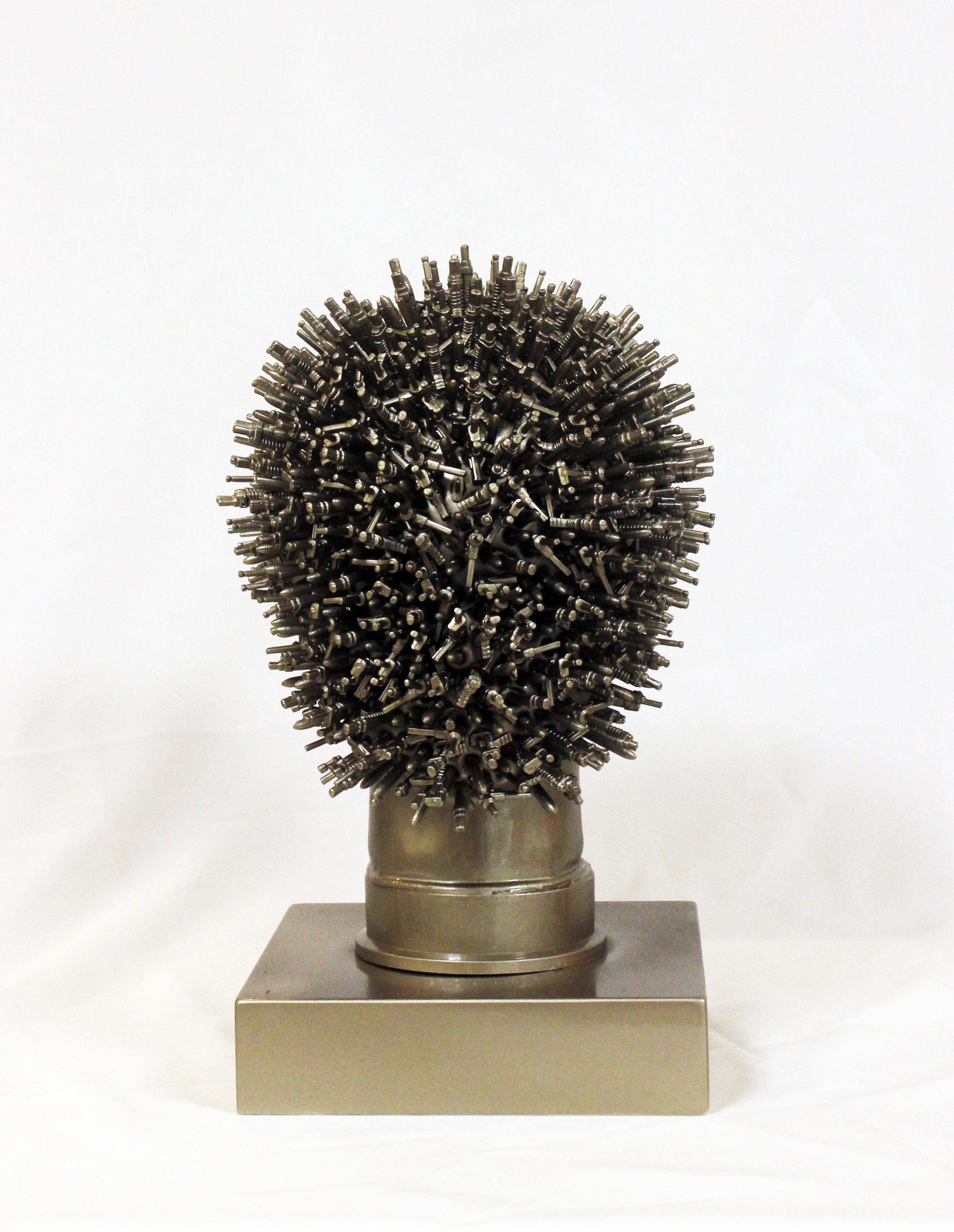 We need to think out of the box and contemplate these works differently. The general view tries to create a typical narrative of the conflict by producing evident daily “stories” about the Palestinian reality. On the contrary, Alhroub attempts to deepen this tension and provide out-of-context inquiries about violence as a culture and a personal psychological state of a person in his geographic and political context. His sculptures, although neatly built and colored, are based on the brutal relationship between violence and desire in their human and social states. His method takes the typical narrative to far away ends. He openly attempts to rearrange relations using a style based on the tense geometrics of shape and partition. He utilizes a method that depends on the repetition of the unit as an open infinite decorative shape. It is crucial to realize here that Alhroub produces works that are not sculpted within the “industrial” concept of the word. Rather his works are composed with thermal violence, where he melts the ends of his materials and then amalgamates them in a calculated manner. It looks as if this shape is trying to fill in a space that is clearly similar to decorative subjects that we can recognize through our daily relation with our environment. The artist employs these similar and repetitive “military” figures in an almost innocent way for aesthetic purposes, which can be an aesthetic metaphor from popular art. Indeed, Alhroub insists on producing a space and making its cornerstone “desire”, a taunted work existing as a structure.
