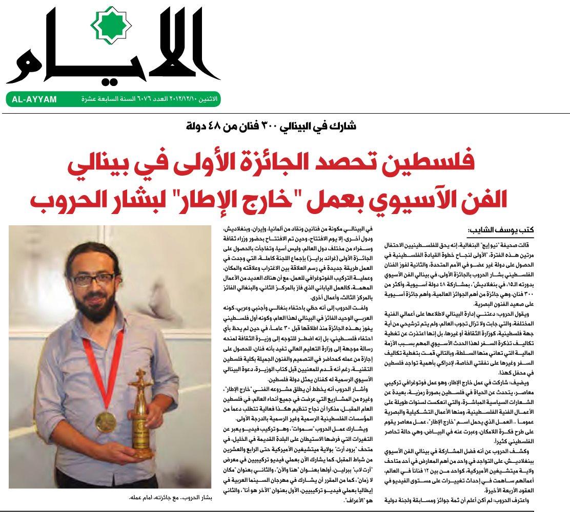 بشار الحروب يحصد أهم جائزة للفنون البصرية على مستوى آسيا