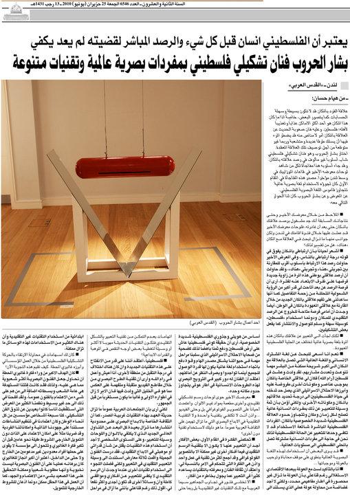 بشار الحروب فنان تشكيلي بمفردات بصرية عالمية وتقنيات متنوعة- هيام حسن ، القدس العربي،٢٠١٠