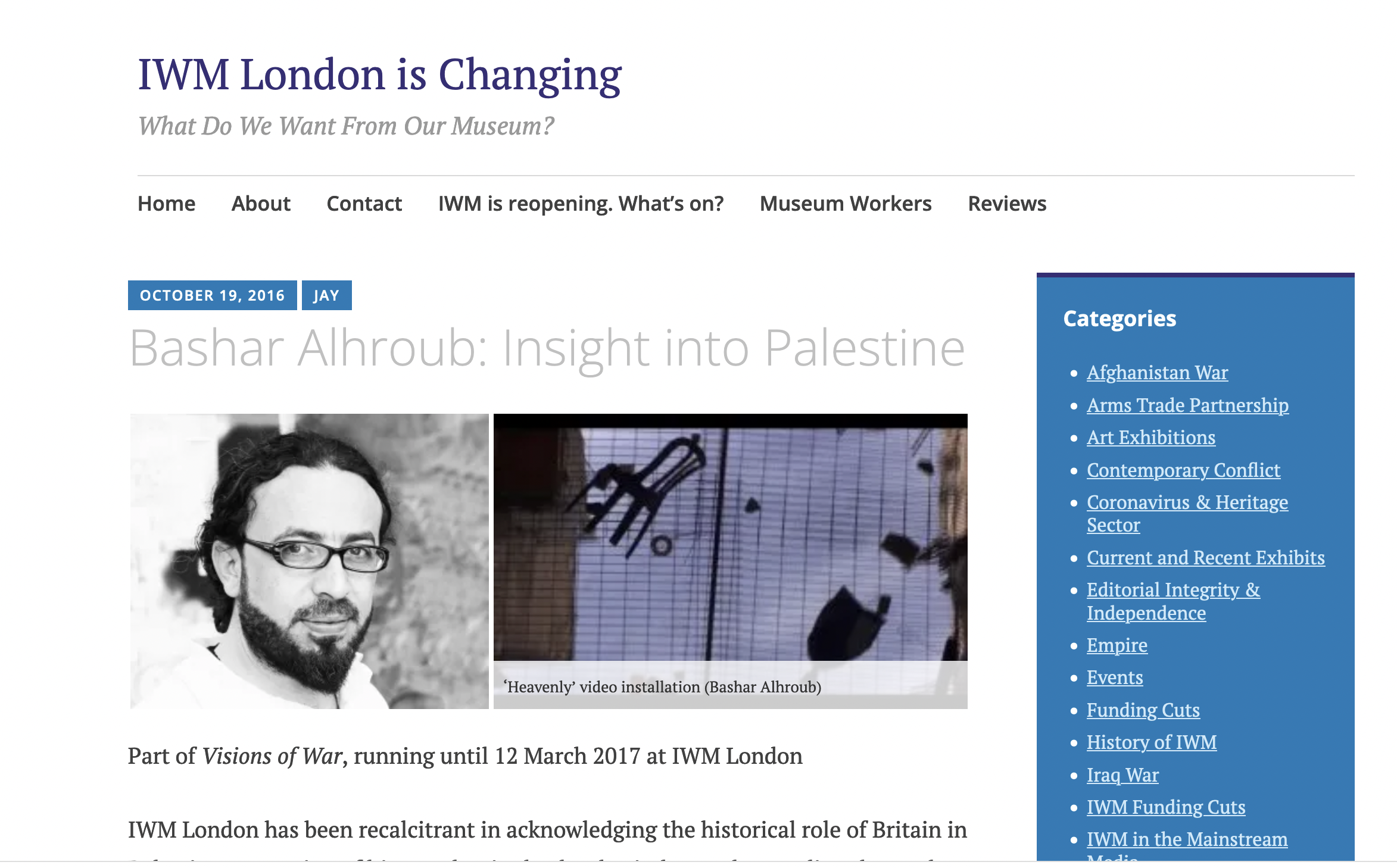 IWM London has been recalcitrant in acknowledging the historical role of Britain in Palestine – a section of history that is absolutely vital to understanding the modern Israel (and allies, notably, US) v. Palestine…