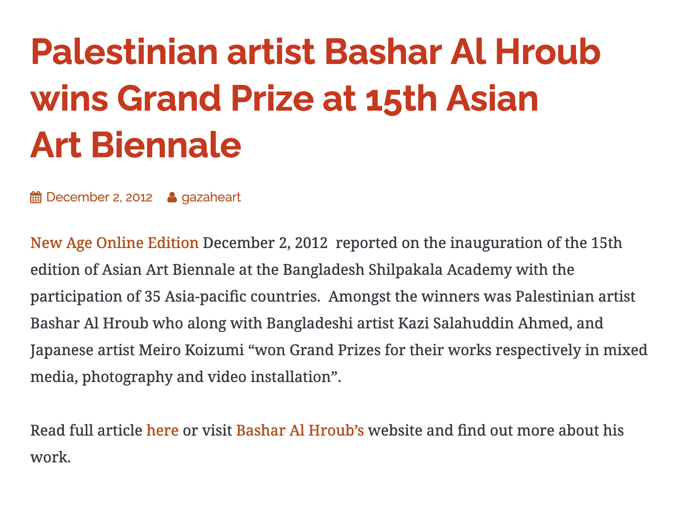 Palestinian artist Bashar Al Hroub wins Grand Prize at 15th Asian Art Biennale